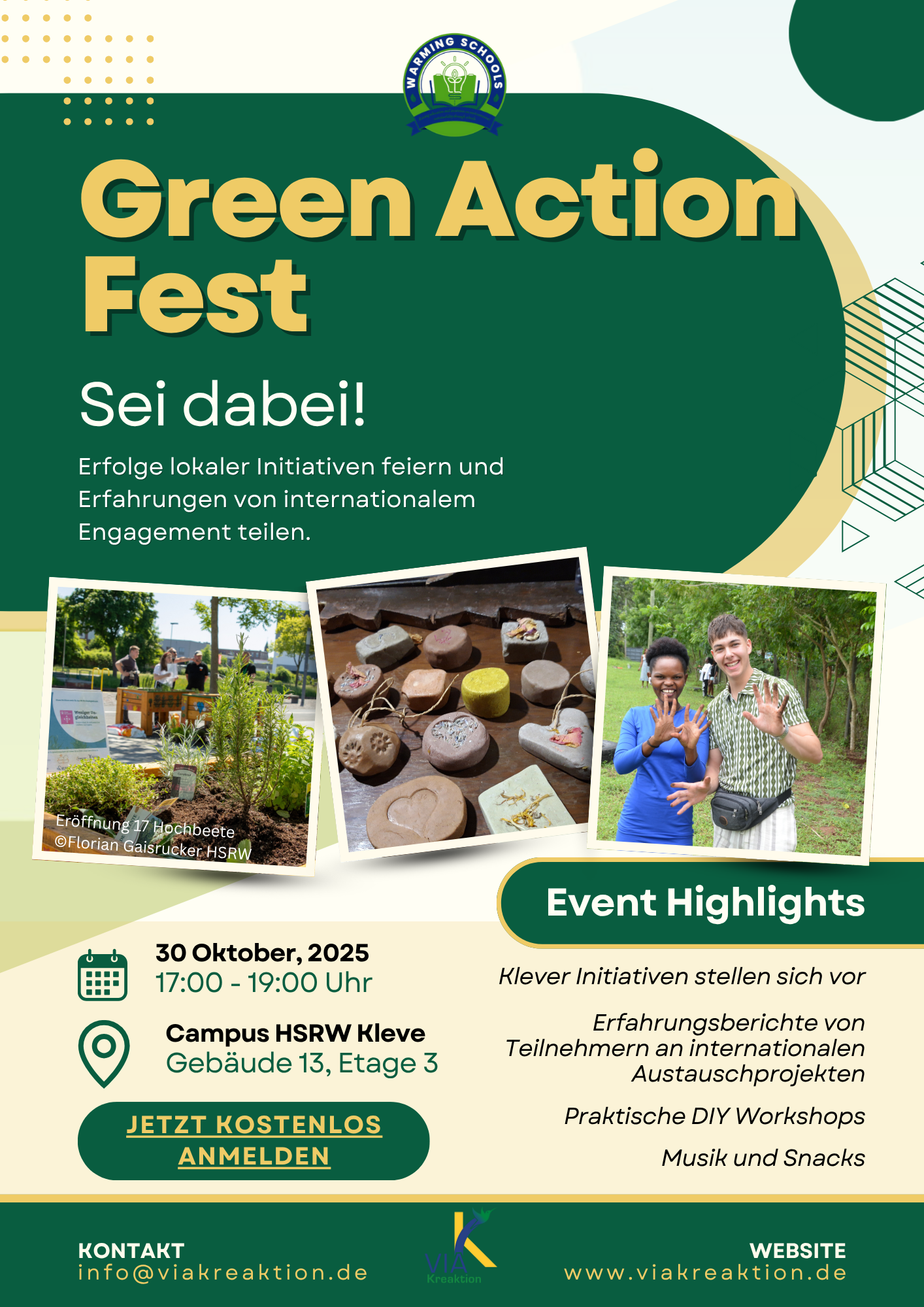 Zum Abschluss unseres "Warming Schools" Projekts laden wir nachhaltige Initiativen, Bildungsträger und junge Interessierte herzlich ein zum Green Action Fest Kleve