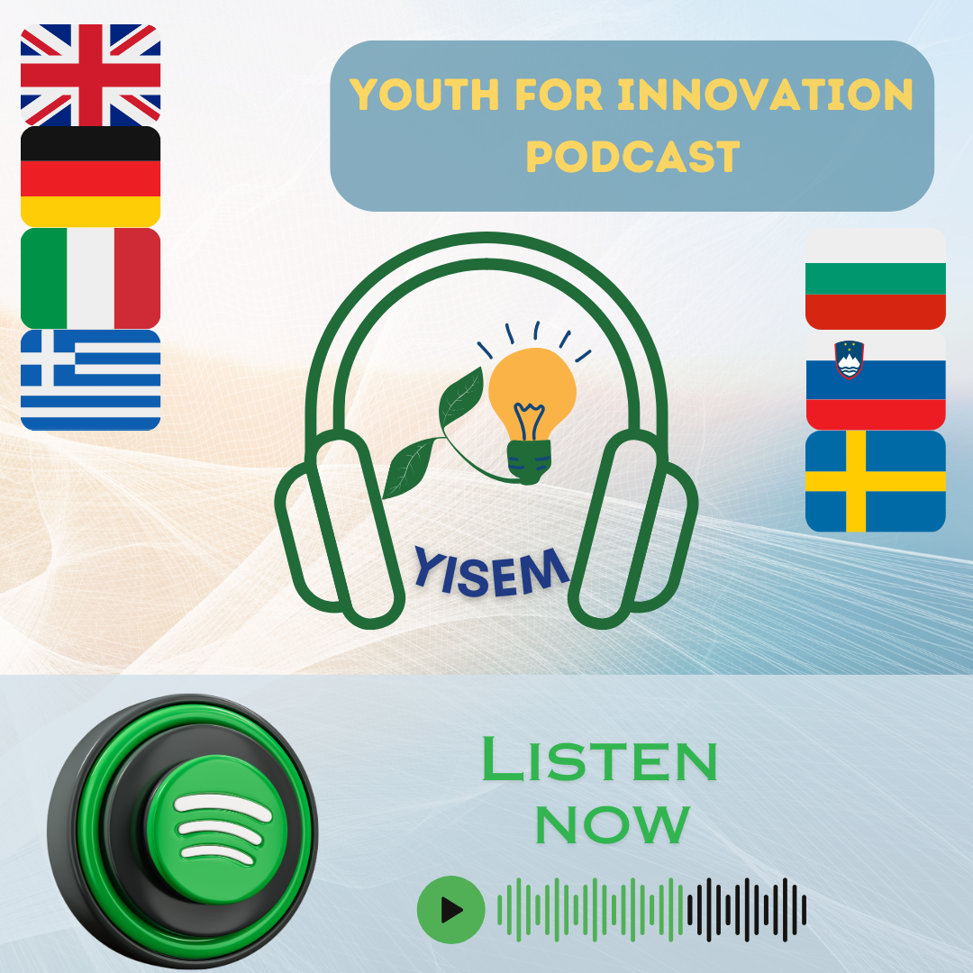 Entrepreneurial competences are not only useful to those who actually want to start a big business but can encourage people to find creative solutions, see opportunities and learn to take calculated risks. Such competences are of great importance in many areas of life - engaging in social initiatives or for professional careers. Get inspired by experiences of young minds experimenting on their own first projects. Learn from insights of experienced entrepreneurs in your country. And get an overview of some central topics and competences an aspiring entrepreneur should know about. Youth for Innovation - This podcast is an initiative of the YISEM project , that focuses on social entrepreneurship to create a community of young people who can shape a better and inclusive world for them and future generations. The project is co-funded by the Erasmus+ program of the European Union. Partners in this project: Via Kreaktion – Germany Champions Factory – Bulgaria Scambieuropei – Italy ACHAIA Adult Education Institute – Greece Nordic Diaspora Forum – Sweden Drustvo Za Razvijanje Prostovoljnega dela Novo Mesto (DRPDNM) – Slovenia
